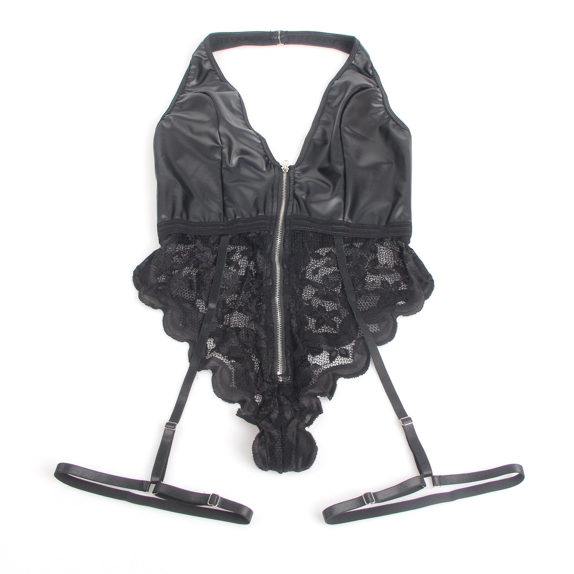 Durf te fascineren met Aria Belle™ Leren Lingerie, een onweerstaanbare fusie van strakke nepleer en romantische kant die elke curve benadrukt. De diepe V-hals in combinatie met een gedurfde rits aan de voorkant biedt een verleidelijk accent, terwijl de bloemenkant onderkant met jarretels de perfecte balans van elegantie en verleiding toevoegt. Perfect voor wanneer je je krachtig, zelfverzekerd en onbeschaamd sexy wilt voelen.
